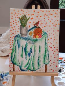 We held a Still Life Canvas Workshop where young people were encouraged to sketch and then paint some or all of the still life objects we had set up for them.