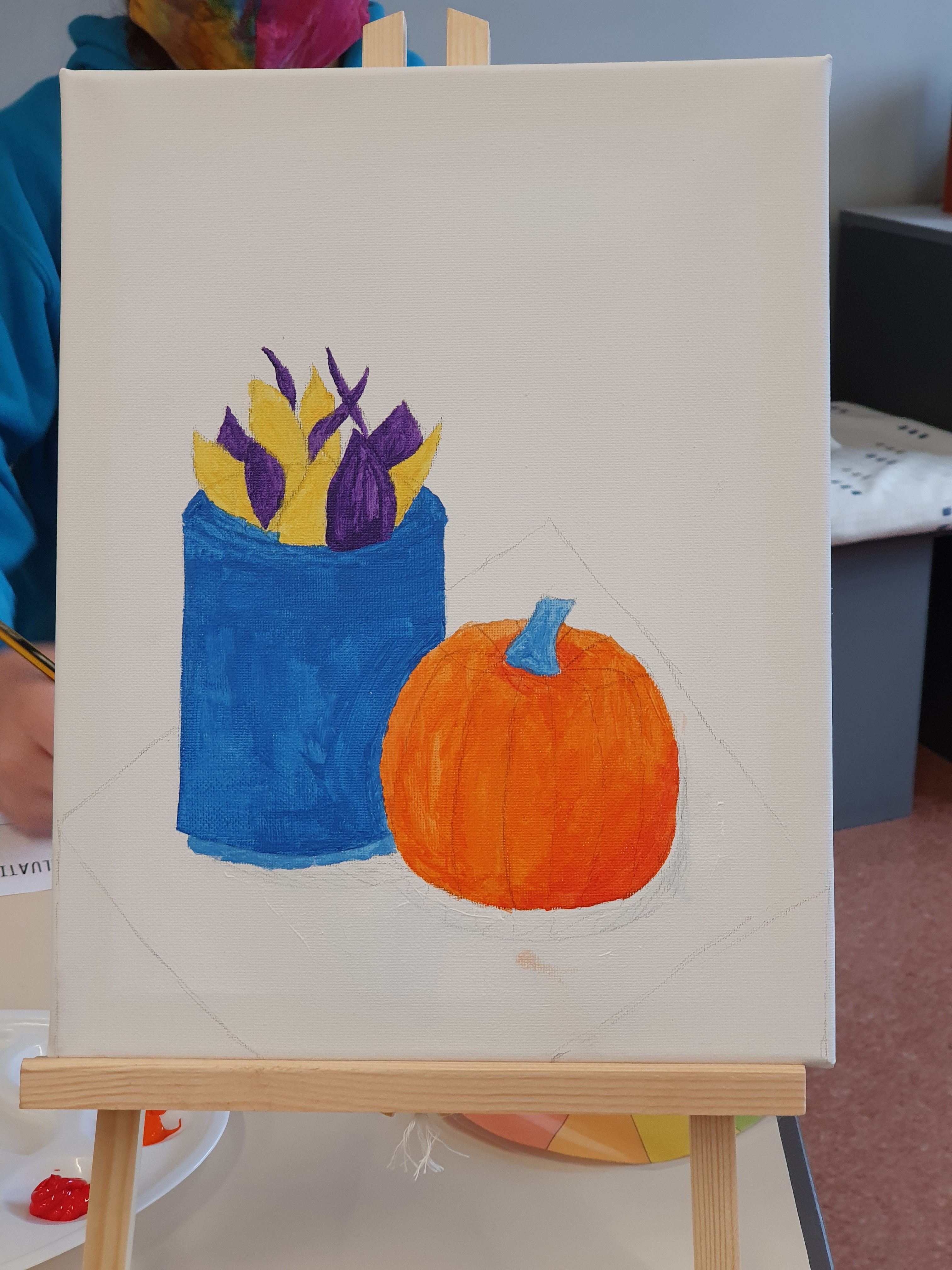 We held a Still Life Canvas Workshop where young people were encouraged to sketch and then paint some or all of the still life objects we had set up for them.